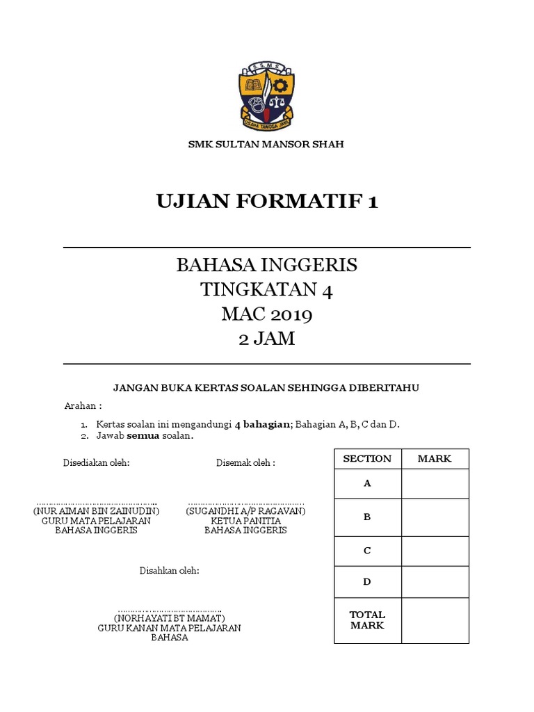 Ujian Formatif Bahasa Inggeris Tingkatan 4 2019 Pdf Linguistics Cognitive Science